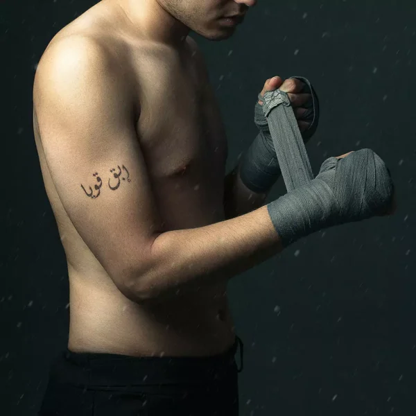 Découvrez le tatouage semi-permanent « ابقَ قويً », une calligraphie arabe élégante et inspirante qui signifie « Reste Fort » « Stay Strong ». Ce design simple mais puissant est un rappel quotidien de résilience, de courage et de détermination face aux défis de la vie.