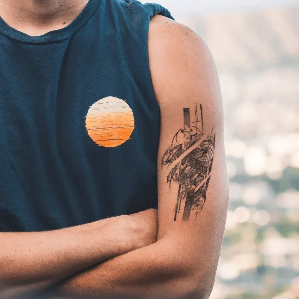 Plongez dans l’avenir avec notre design « Cyber Rider ». Ce tatouage semi-permanent met en scène une moto futuriste aux lignes épurées et à l’allure agressive, symbolisant vitesse et innovation. Les éléments abstraits et les lignes de vitesse ajoutent une dimension dynamique, parfaite pour ceux qui aiment l’esthétique cyberpunk et la technologie de pointe. Idéal pour exprimer un style moderne et audacieux.