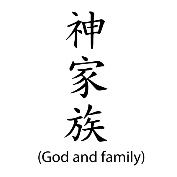 Portez vos valeurs essentielles avec le tatouage semi-permanent « Dieu et Famille ». Un design épuré en caractères chinois pour exprimer l’importance de votre foi et de vos proches.