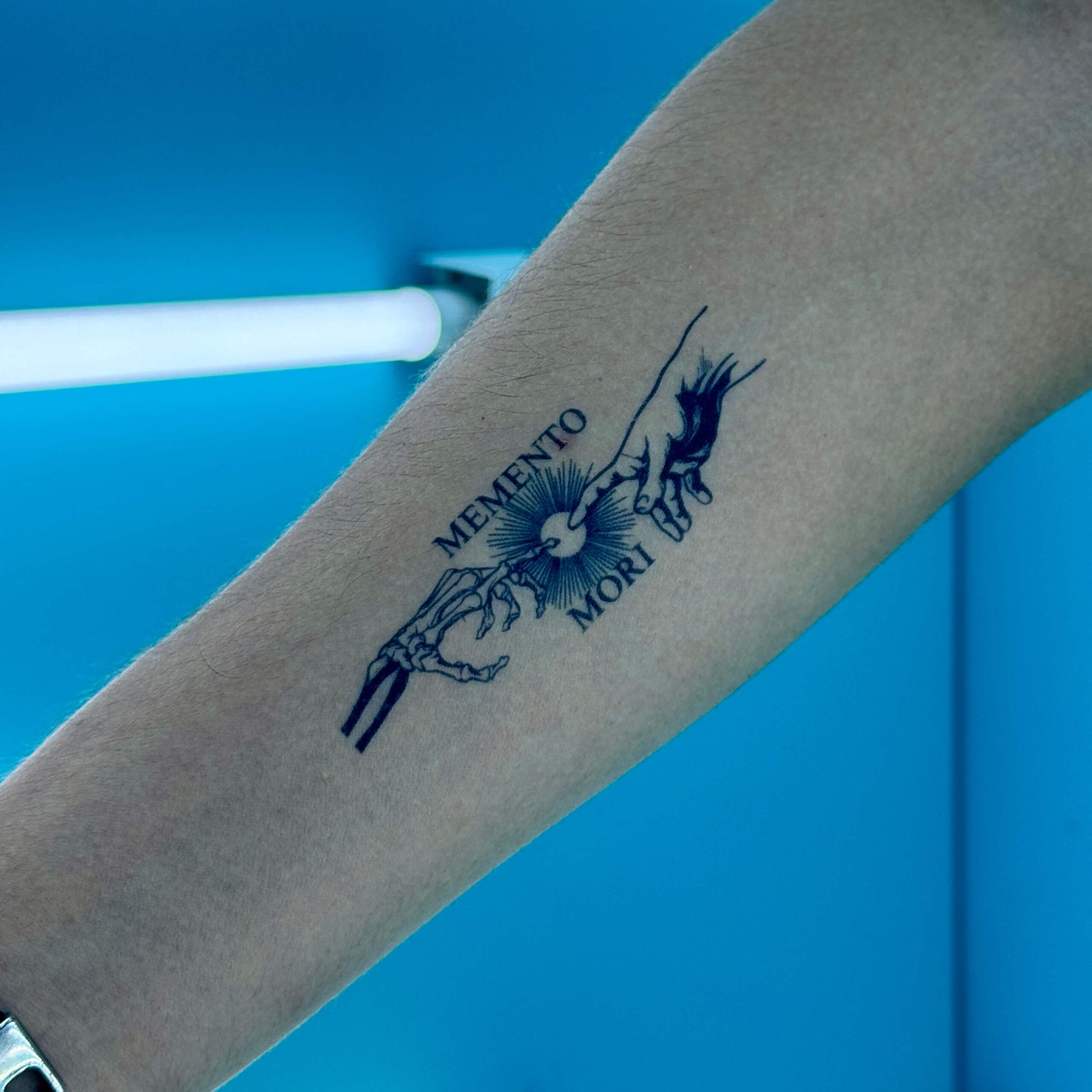 Ce tatouage semi-permanent « Memento Mori » rappelle la fragilité de la vie et l’importance de vivre pleinement. Le terme « Memento Mori » signifie « Souviens-toi que tu vas mourir », incitant à apprécier chaque instant. Facile à appliquer, il offre une tenue durable et un design significatif qui mélange art classique et symbolisme profond.